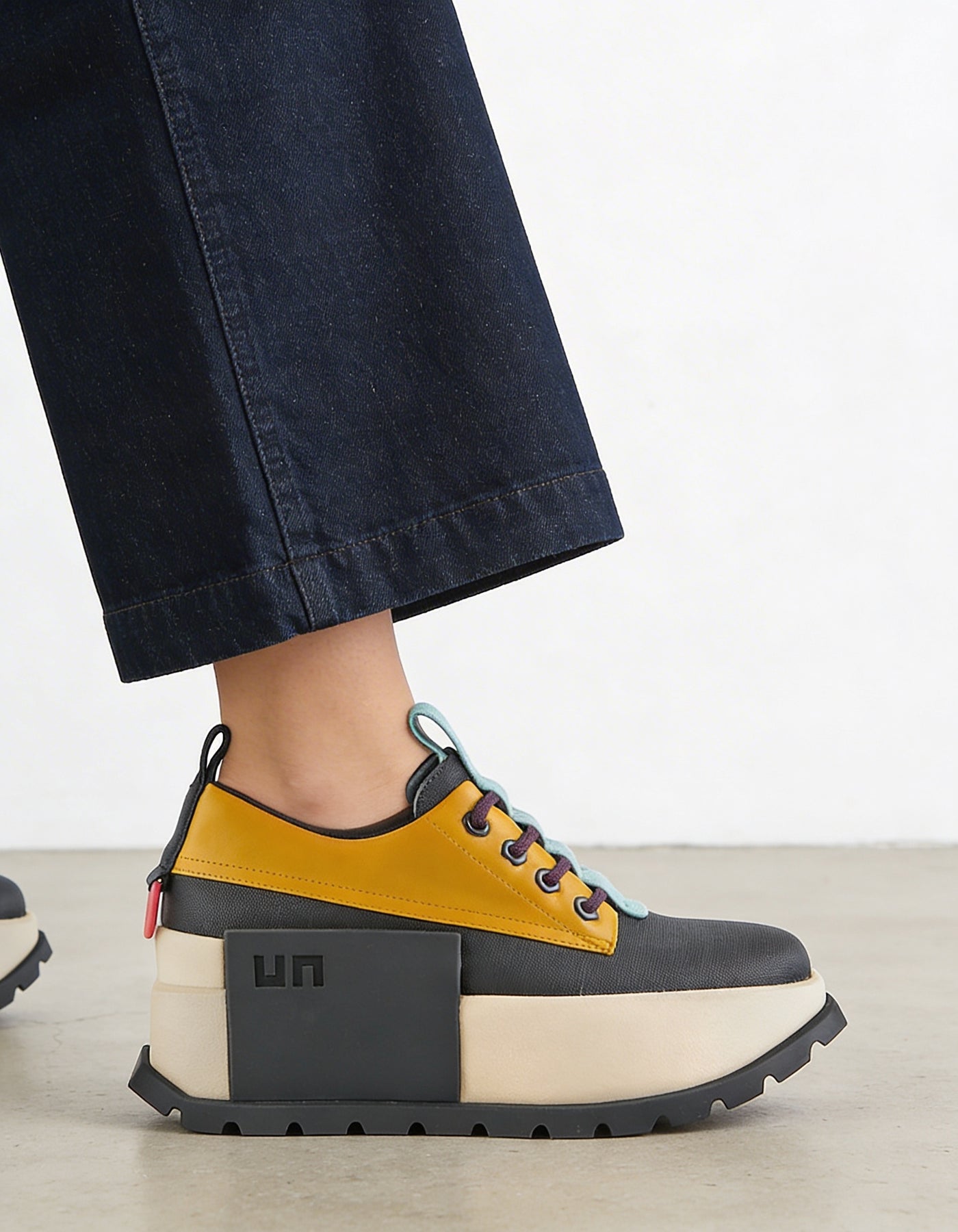 La sneaker Roko Patrol es un modelo funcional, con cordones para el uso diario, una parte superior de cuero vegetal y nailon recubierto de goma y una suela con plataforma interior para aportar un extra de altura y comodidad.