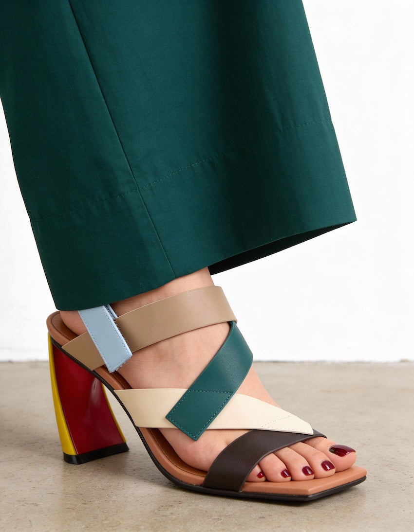 Esta sandalia de tacón tan especial confeccionada en cuero reúne todo lo que buscas: diseño, practicidad, ligereza y confort. La Zuma Straps Hi es perfecta para mujeres que desean una sandalia de piel original, pensada para acompañarlas durante años sin caer en lo convencional. Su tira trasera con velcro permite un ajuste preciso y cómodo, mientras que la estructura de tiras geométricas y el tacón curvado aportan una estética limpia, moderna y de inspiración futurista. Una sandalia de tacón colorida súper original con la que marcar tendencia allá donde vayas